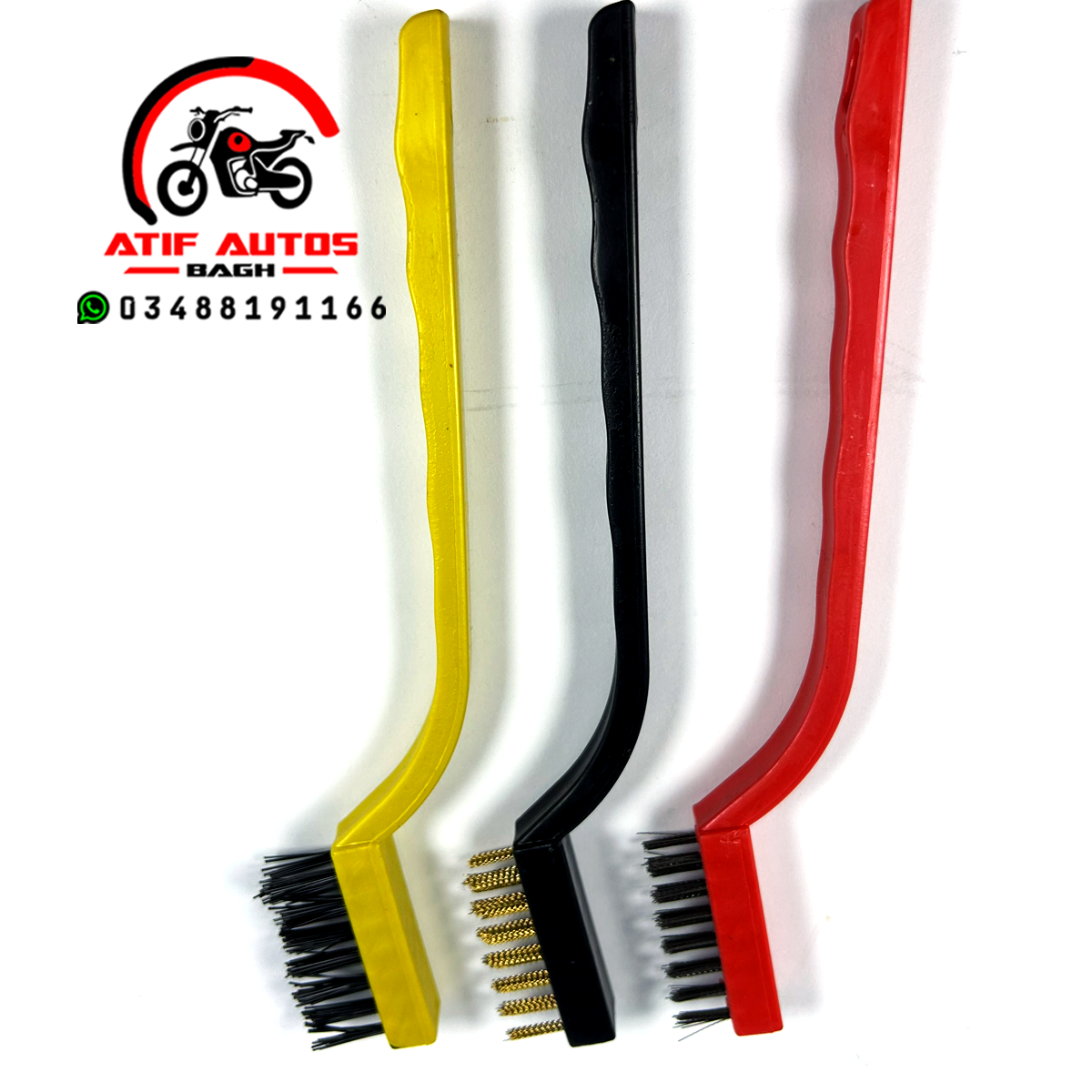 Tackle tough grease, rust, and stubborn dirt with our 3-Piece Professional Wire Brush Set. This versatile kit features three different brush types specifically designed for detailed cleaning on various surfaces. The ergonomic long-handle design allows you to reach tight spots, engine bays, and intricate motorcycle parts easily. Whether you are cleaning spark plugs, removing paint, or scrubbing off engine carbon, this set provides the right tool for the job.