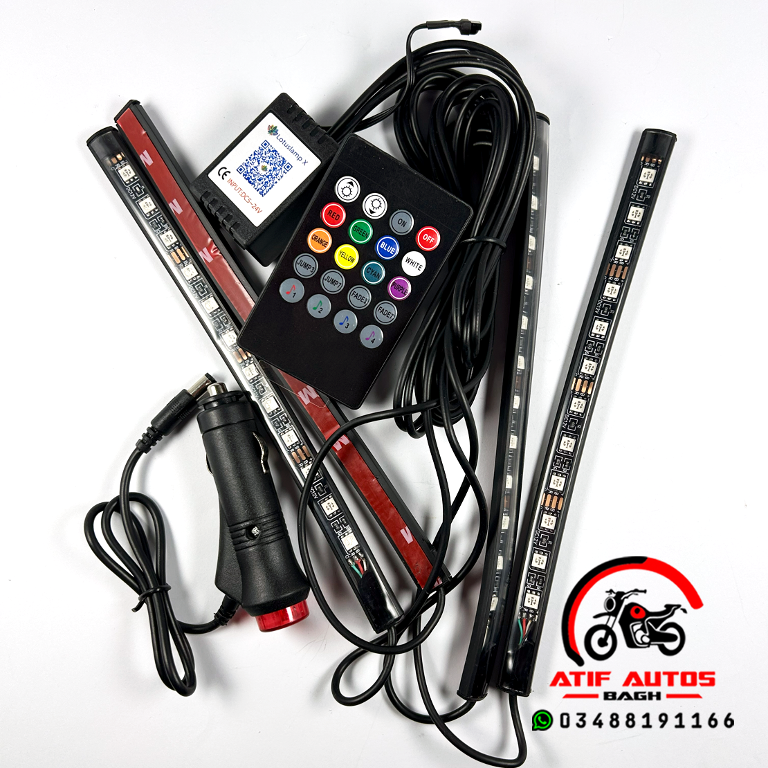 Universal Interior Atmosphere LED Light Kit – Bluetooth App & Remote Controlled RGB Strip Lights for Cars & Motorcycles